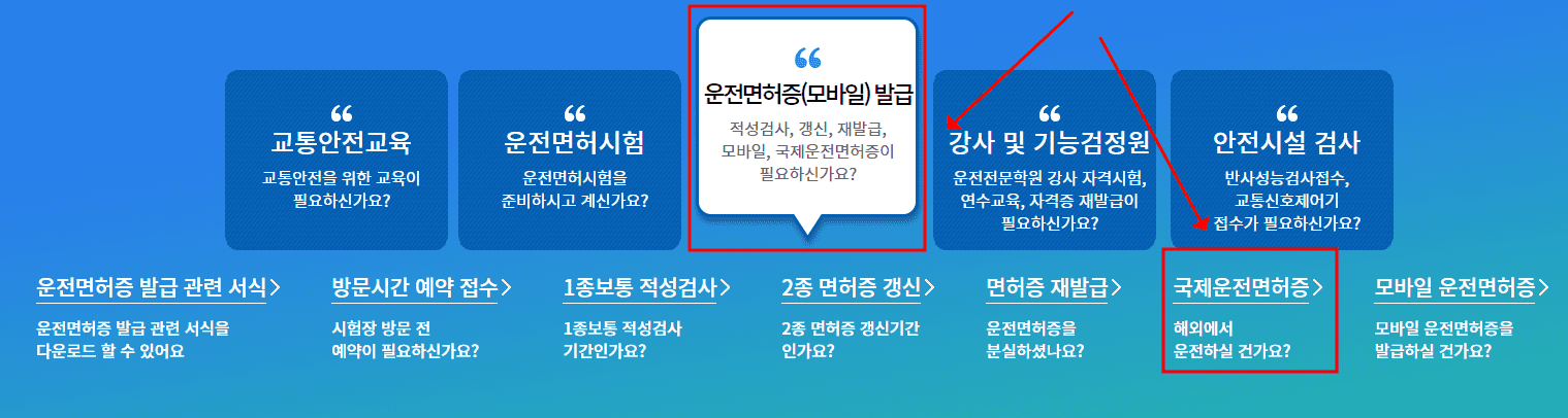 그럼 아래 이미지처럼 상단에 "운전면허증(모바일) 발급 - 국제운전면허증" 탭으로 들어가야 합니다.