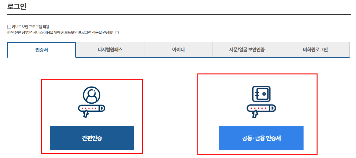 - 복합인증을 위한 로그인 페이지가 다시 나온다면 공동인증서 로그인으로 인증