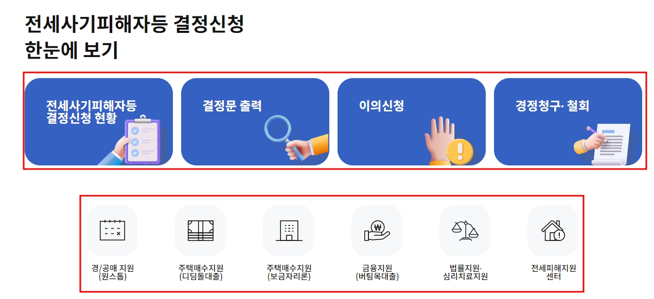 전세사기 피해지원센터 사이트에 가면 위와 같은 화면이 나옵니다. 피해자 신청 현황을 볼 수 있고 결정문과 이의신청도 모두 가능합니다.