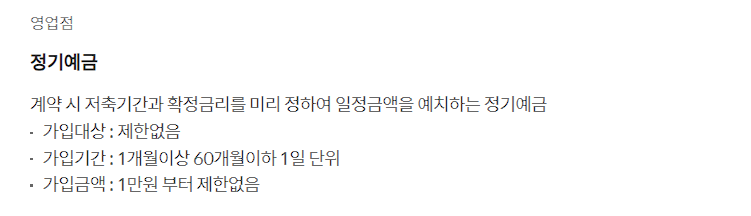 이 상품의 가입 기간은 1개월부터 최대 5년까지로 꽤나 긴 시간 목돈을 모아둘 수 있는 상품입니다.