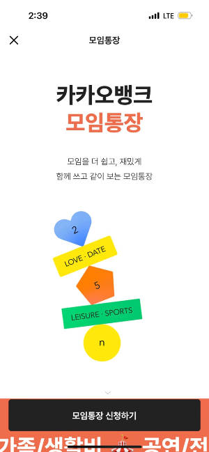 그럼 이제 카카오뱅크 모임통장 만들기가 가능한데요. 여기서 모임통장 만드는 데 두 가지 방법이 있습니다.