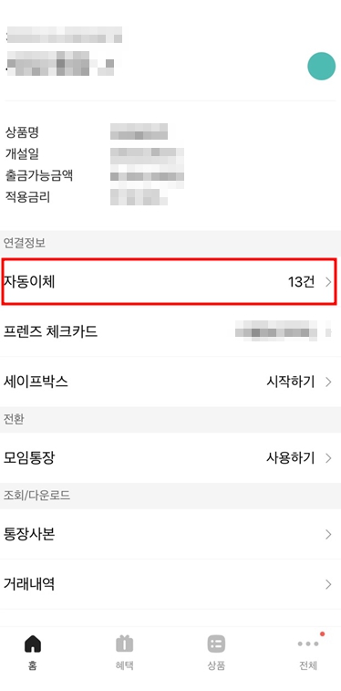위 내용에서 카카오뱅크 모임통장 만들기 방법에 대해 알아봤습니다. 이렇게 카카오뱅크 모임통장을 만들었다면 이제 모임통장에 정해진 날짜에 알아서 입금되도록 자동이체 설정을 어떻게 하는지 알아보겠습니다.